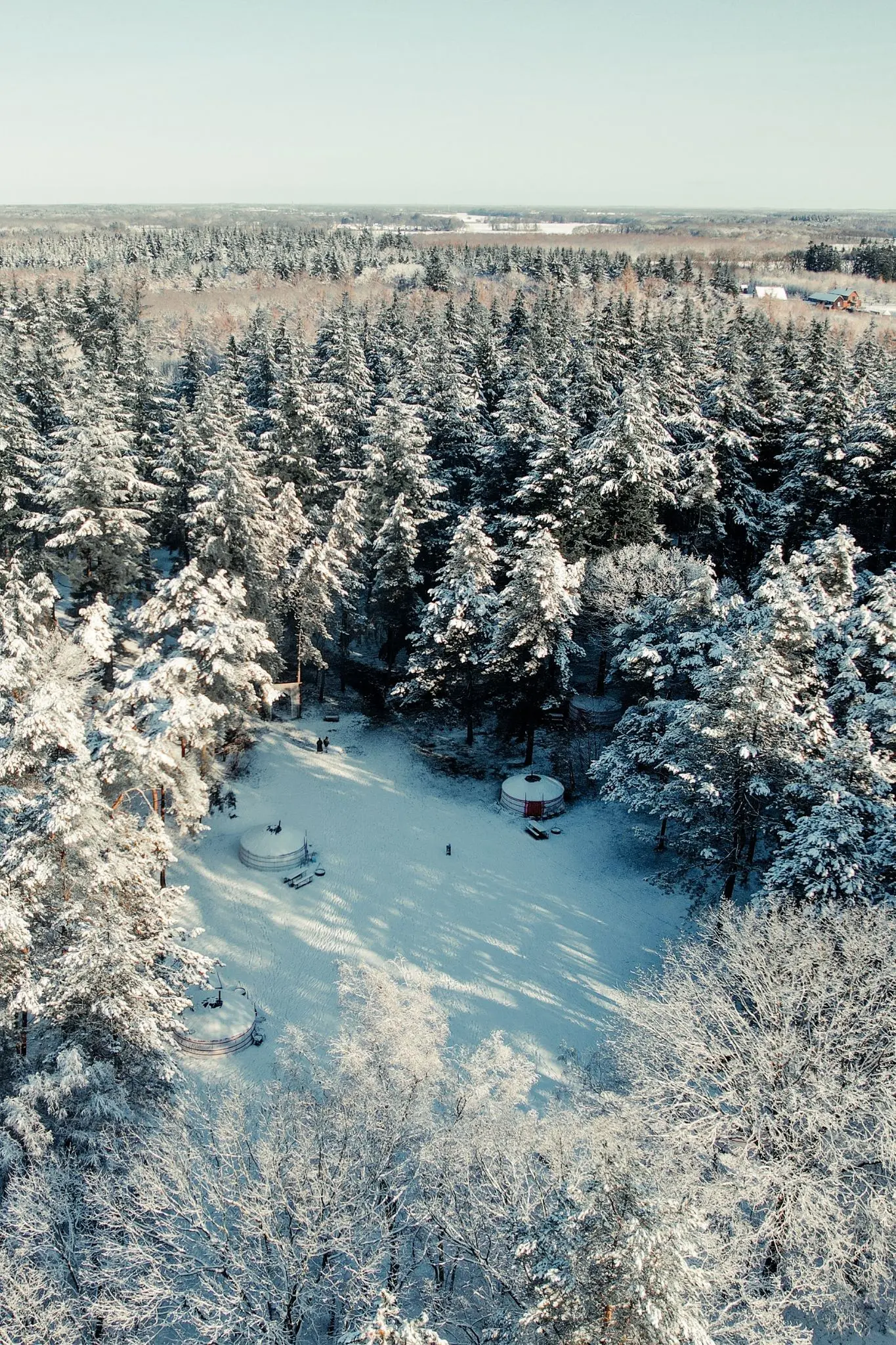 In de winter wordt de yurt echt een warme cocon. De heidevelden van Drenthe kunnen bedekt zijn met een laagje sneeuw, de lucht is zachtblauw en helder, en de stilte die dan in het bos hangt is bijna betoverend. Je voelt de koude lucht op je wangen wanneer je naar buiten stapt, maar bent binnen enkele seconden weer warm zodra je de yurt instapt.